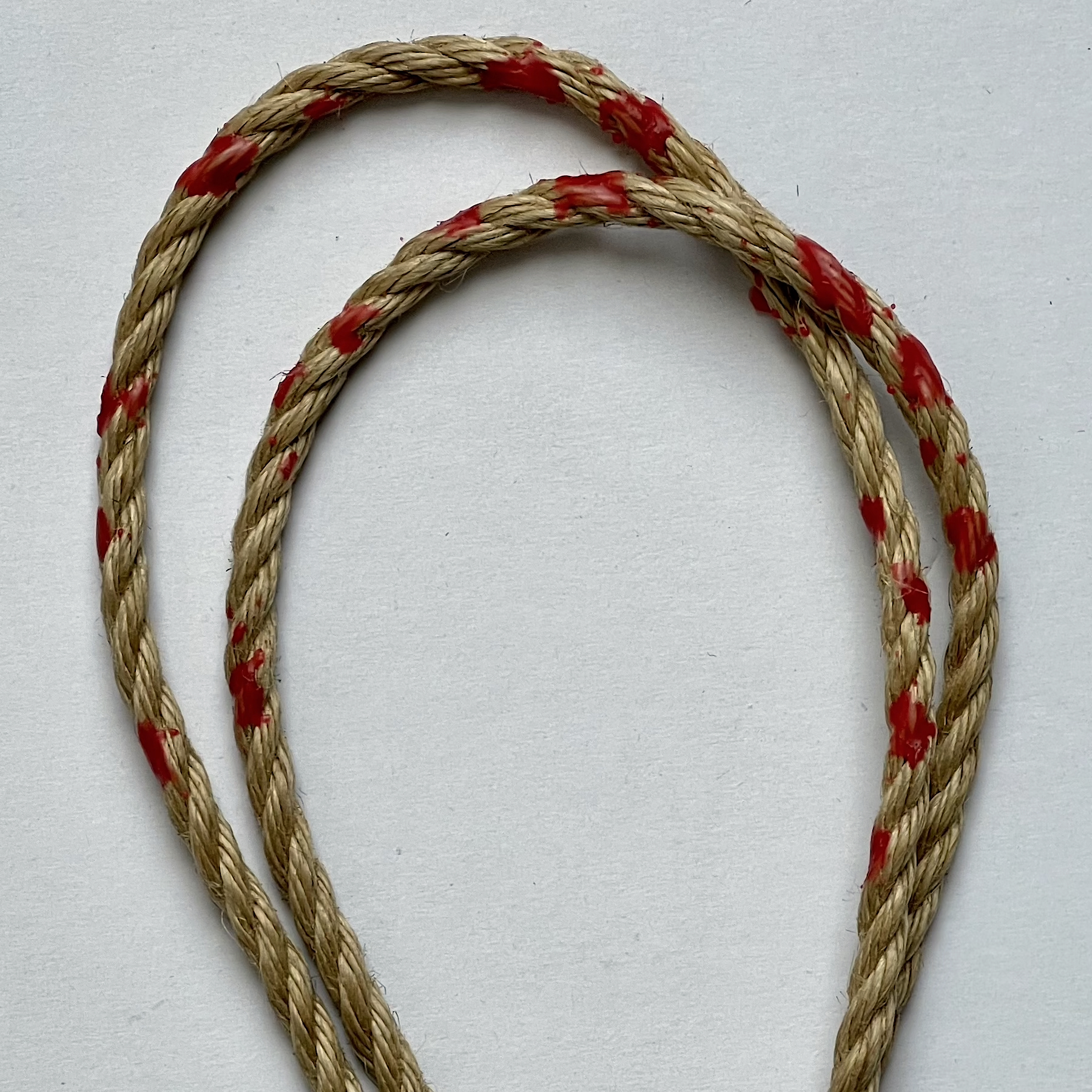Once hard, and taking care not to disturb the integrity of the rope, strands or yarns, carefully pick out the worst along the direction of the yarn using the back of your thumb nail.