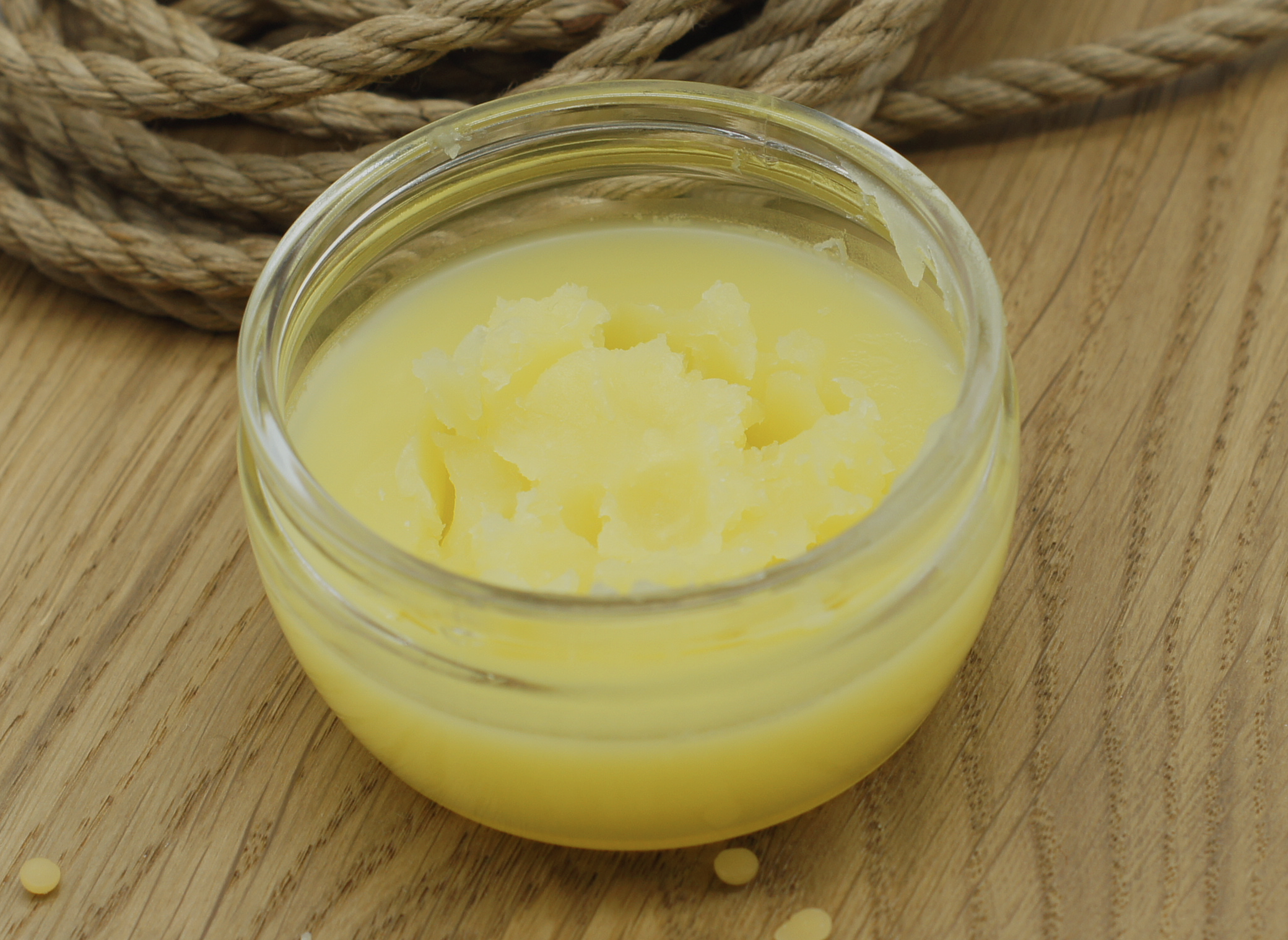 - When the mass has cooled, you should have a light yellow, firm, supple butter to condition your ropes.