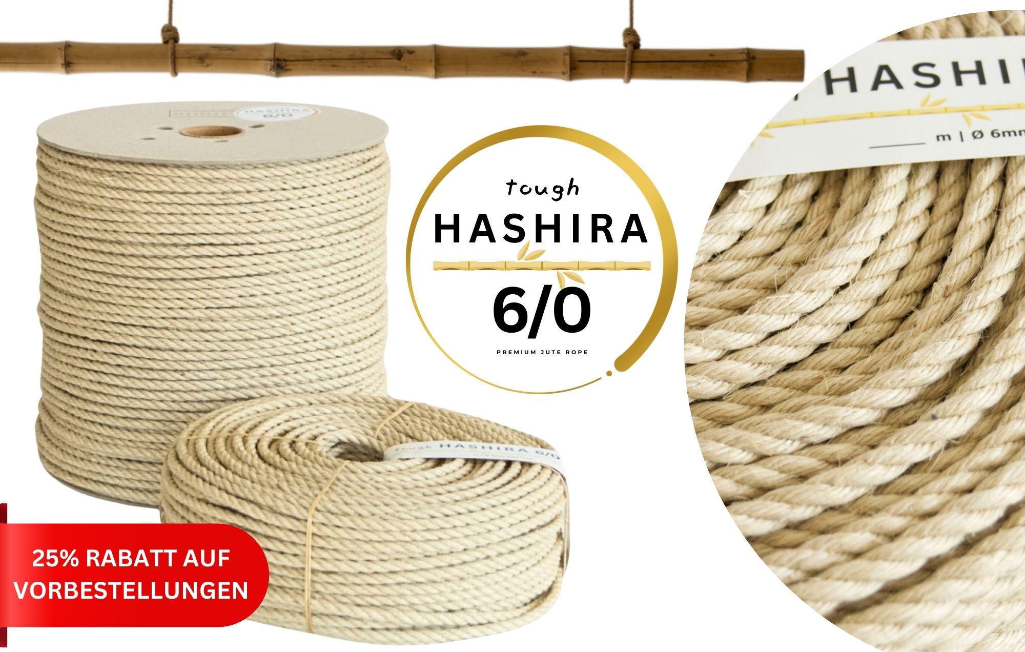 bei AMATSUNAWA ist es unsere Mission, hochwertige, langlebige und sorgfältig gefertigte Seile aus Naturfasern anzubieten. Heute freuen wir uns besonders, Ihnen die neueste Ergänzung unseres Portfolios vorstellen zu dürfen: HASHIRA 6/0 tough. Ein hart-geschlagenes Seil speziell für die Anwendung am Bambus (Hashira).